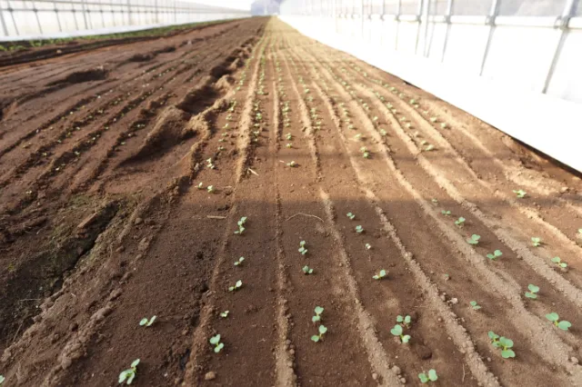 播種:小松菜(ハウス1棟目北 1-2口目 菜々音 4条)