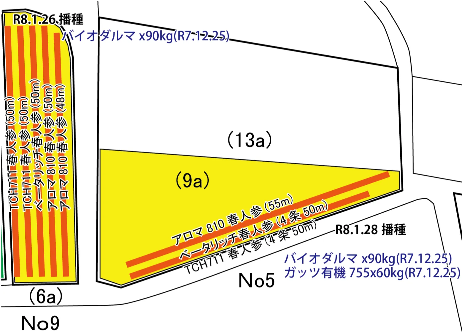播種:人参(圃場No9トンネル アロマ810x50mx2本 ベータリッチx50m TCH711x50mx2本)