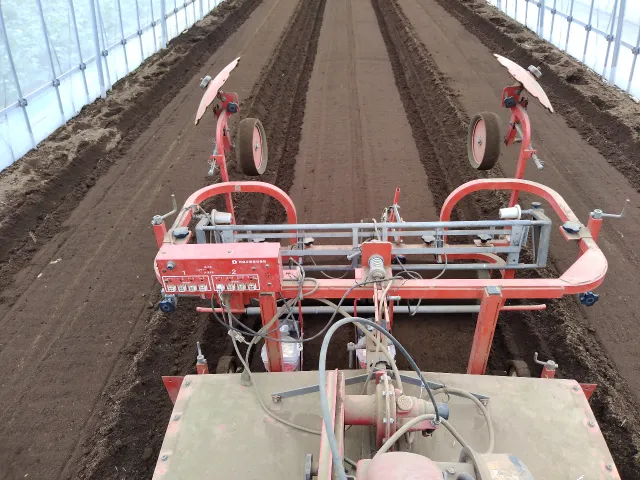 播種:人参(ハウス5棟目6口目)(アロマ81015条-1.2万粒 株間6cm)