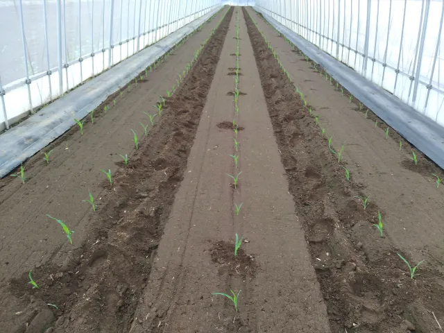 播種:小松菜(ハウス1棟目北 2-1口目 菜々音 4条)