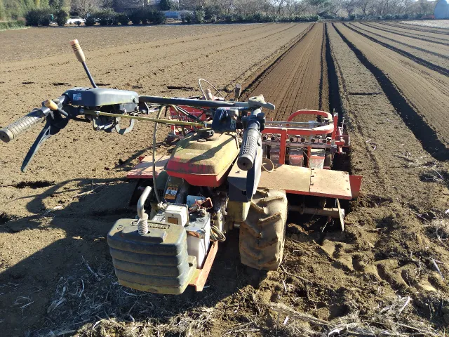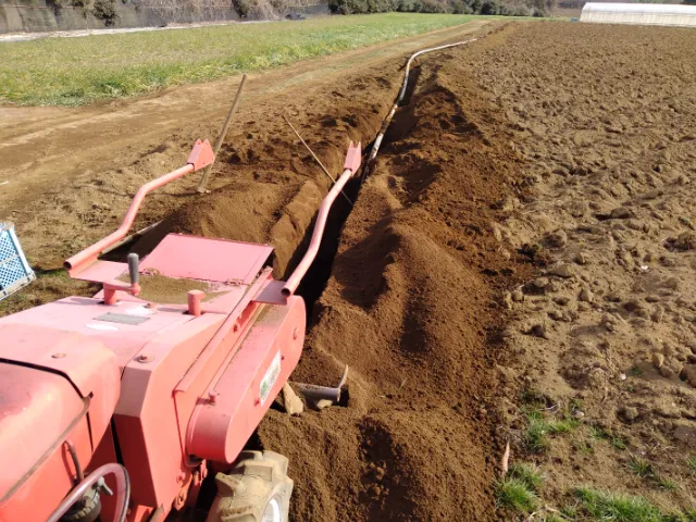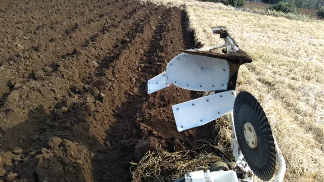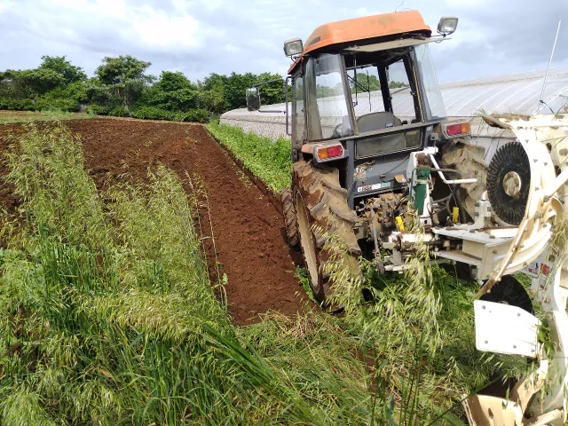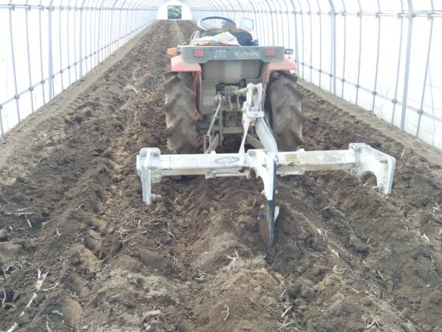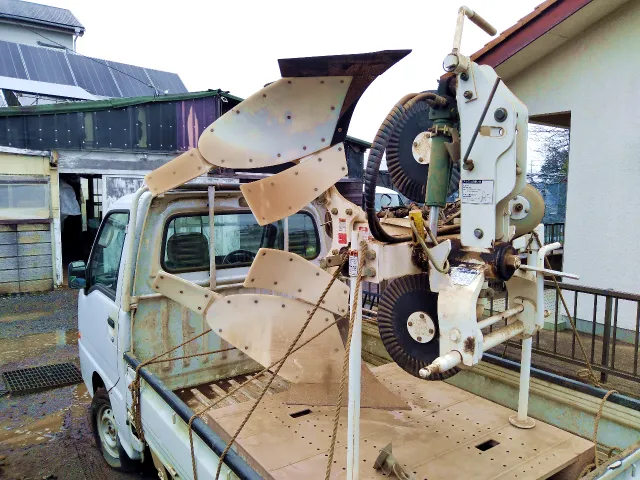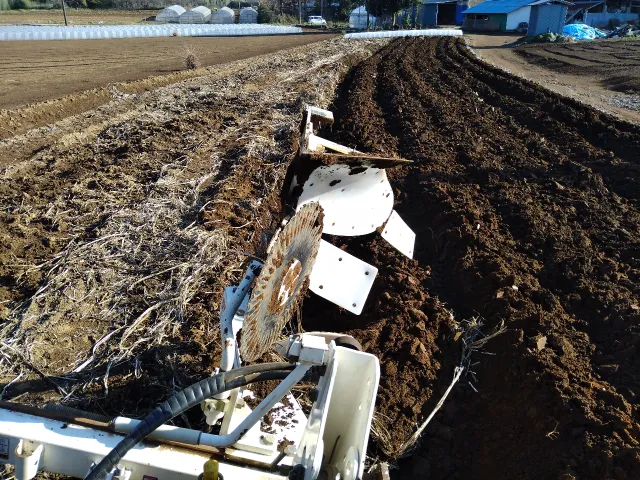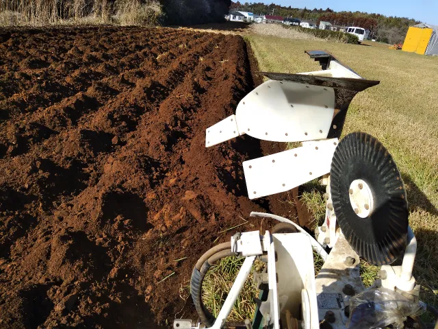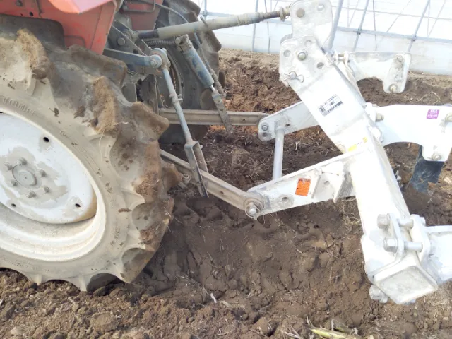 知り合いを通じ中古のリバーシブルプラウを購入しました。緑肥の鋤込み省力化を期待。外部油圧がないのでどうするか?