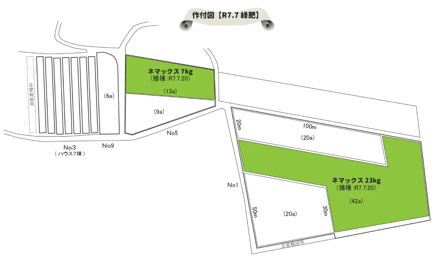 播種:小松菜(50mx6条,菜々美,ハウス南3棟目南側)