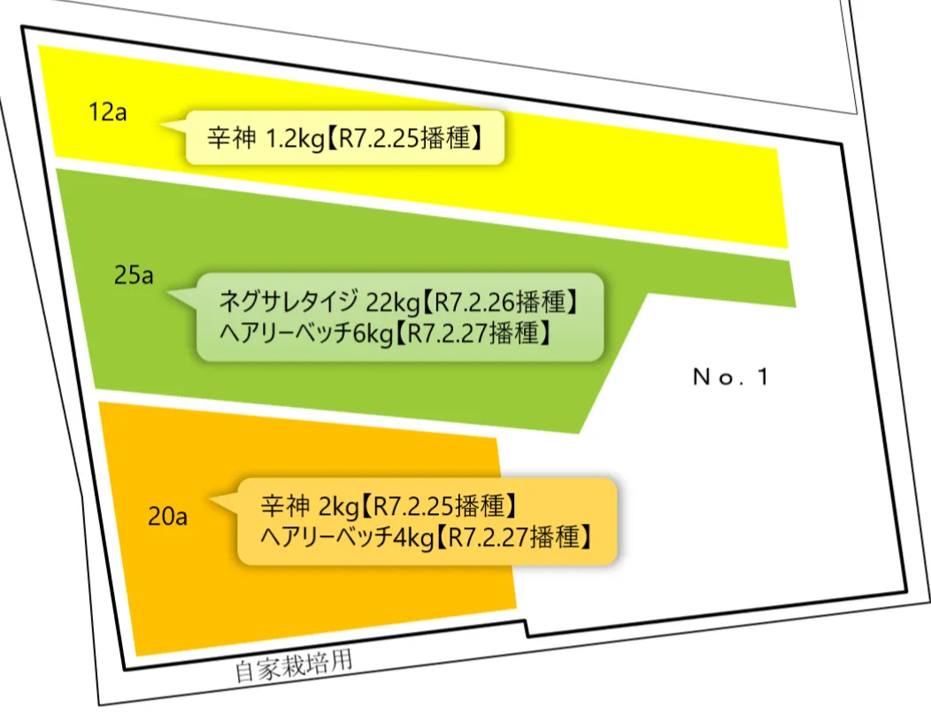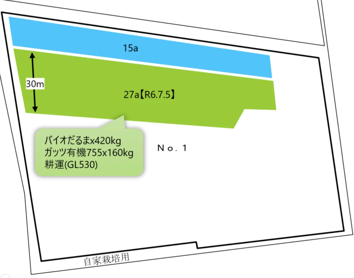 播種:小松菜(菜々美)50mx7条(ハウス北2棟目南側)
