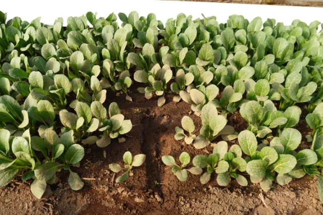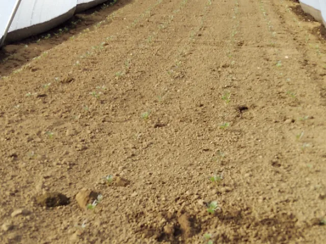 播種:小松菜(ハウス1棟目北 1-2口目 菜々音 4条)