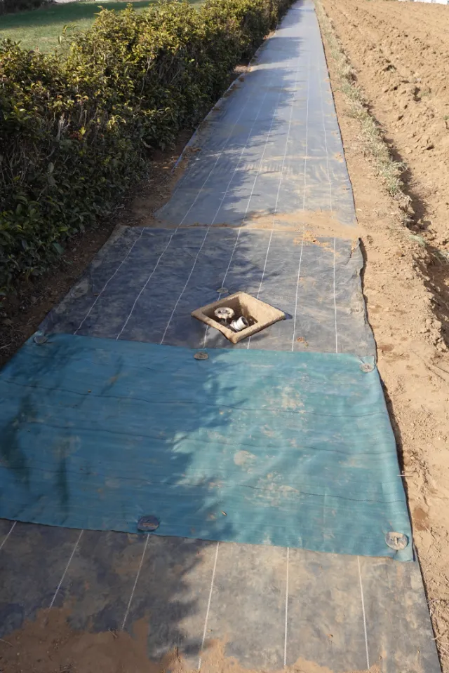春人参発芽状況(11.1播種) 小松菜播種(右側)